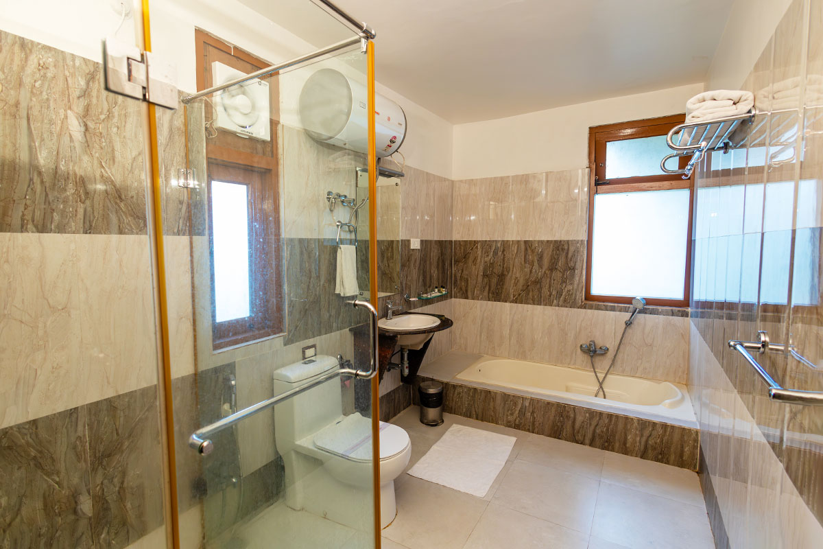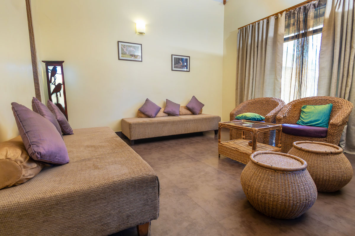 Thoughtfully designed with comfort and sophistication in mind, these en-suite villas offer a homely experience amidst premium offerings. The beautifully built haven features a spacious king-size bed, spacious sofa, private setting place and attached bathroom with premium toiletries. The room also comes with ceiling-to-floor windows that offer great views of the surrounding nature. Whether you want to spend quality time with your family or seeking a romantic getaway, this villa can be your perfect choice.